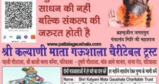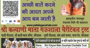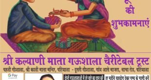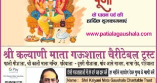 गोपाष्टमी मोके गौ भक्तों ने गौशाला में गौ माता की पूजा की, टेका मत्था पटियाला, 21 नवंबर:-श्री कल्याणी माता गौशाला, काली माता मंदिर, पटियाला में गोपाष्टमी बड़ी धूमधाम से मनाई गई। सुबह से लेकर देर शाम तक हजारों की संख्या में गौभक्तों ने गौमाता को तिलक कर, खंमणी बांधकर और …